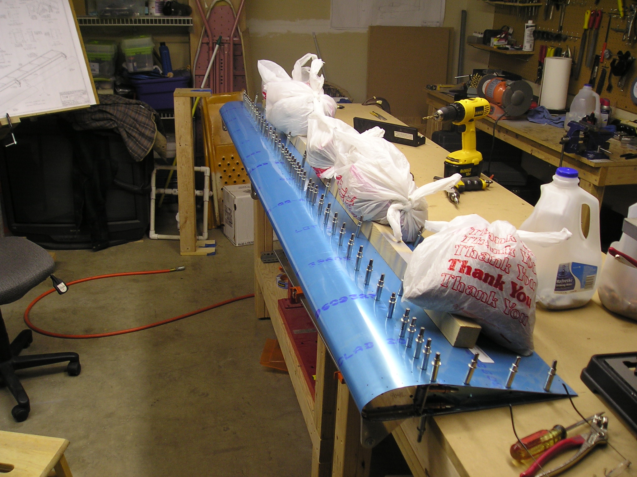 Cleco'd FL-901A/B skins to assembly. This is quite hard to get them