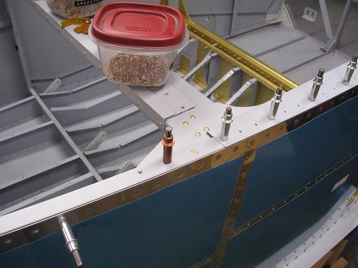 This angle was fit and drilled during tailcone assembly. Now cleco for riveting