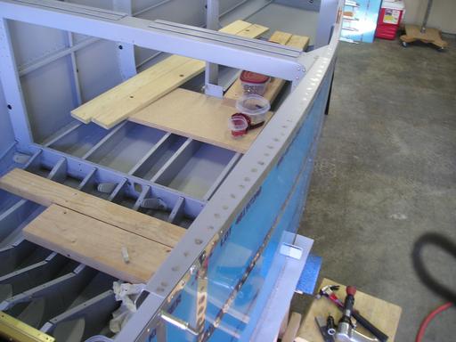 The F-695-L/R gussets are next. Most rivets could be done with the hand squeezer. The few left in this picture had to be done with the rivet gun.